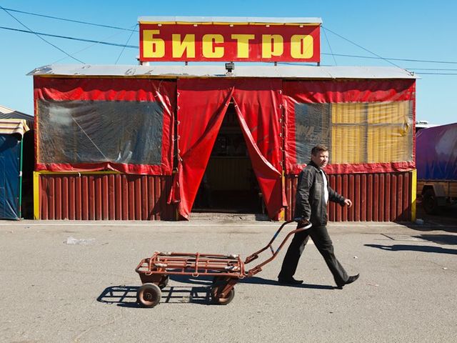 Dafür werden die meisten Ukrainier nie das Geld haben – obwohl auf "7 Kilometer" gefälschte Sachen verkauft werden, befriedigt der Markt die Sehnsüchte der Leute, zumindest für den Anfang des Kapitalismus bei uns ist er gut. Aber die Besitzer haben sich buchstäblich geschämt für ihre Container – dabei haben die eigentlich etwas Tolles geschaffen. Ich habe ähnliche Märkte in Osteuropa besucht, aber nie einen so großen, so organisierten und doch so chaotischen Ort gesehen.