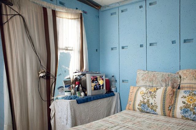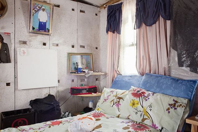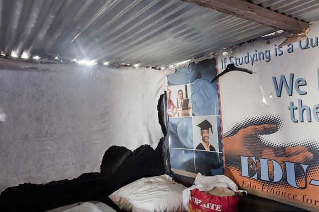 Es gibt Unterschiede, etwa beim Material - ob sie mit Wellblech, Pappe, Holz oder schon Beton gebaut wurden. Neben selbstgebaute Hütten zeige ich auch Hütten, die von der Regierung zur Verfügung gestellt werden - meist nach langer Zeit des Wartens. Sie sind aus einfachen Beton-Panels zusammengesteckt und verschraubt. Um einen möglichst authentischen Eindruck zu bekommen war mir wichtig, dass die Bewohner nichts verändern. Um diesen Eindruck zu verstärken, habe ich mich entschieden, nur den Schlafbereich dieser Hütten zu fotografieren. Für mich der intimste Bereich eines Wohnraums. Bei manchen steht ein Bild in dieser Ecke, bei anderen ein Fernseher. Und bei einem ist so wenig Platz in der Hütte, dass sein Fahrrad über dem Bett hängt. Auch wenn die meisten Menschen kaum etwas haben, erzählt doch jede Hütte eine Geschichte.