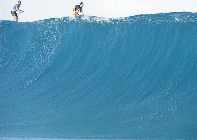 Lars Jacobsen: Die Herausforderung ist es, Natur, Mensch und Technik in einem guten Foto zu vereinen. Konkret gesagt: Du sitzt im Wasser, die Surfer rasen auf dich zu, die Welle bricht über dir und die Strömung treibt dich ab. Kollegen passiert es öfter, dass sie mit Surfern zusammenstoßen, oder sie auf scharfkantige Riffe gespült werden, über denen die besten Wellen brechen.