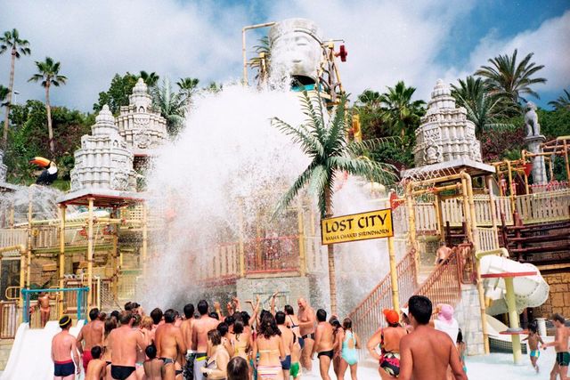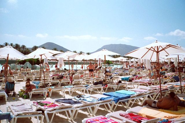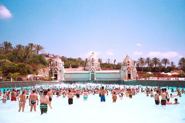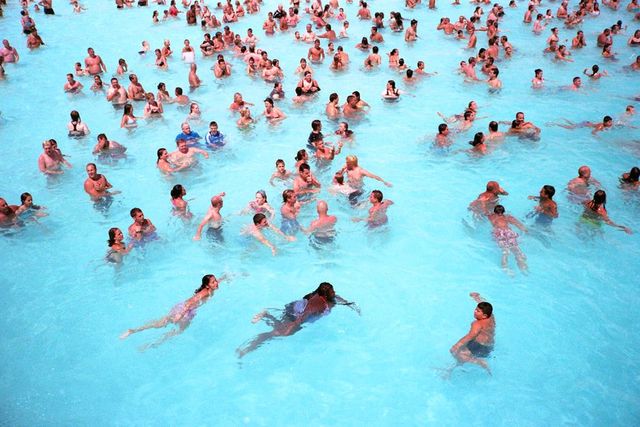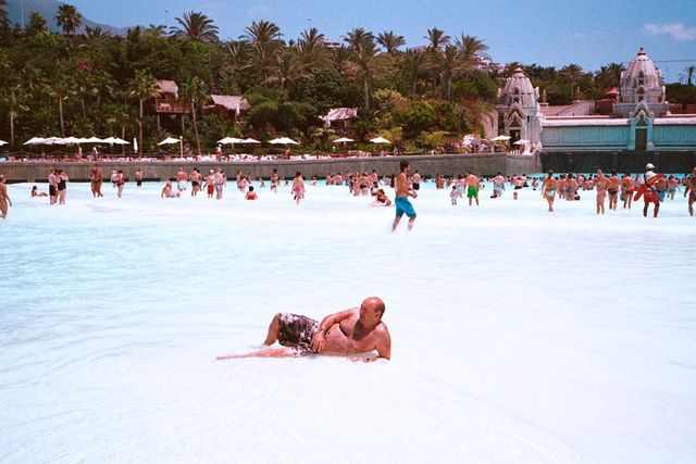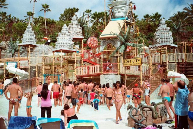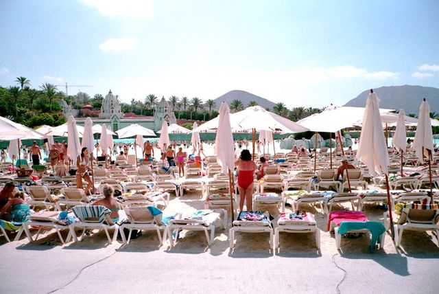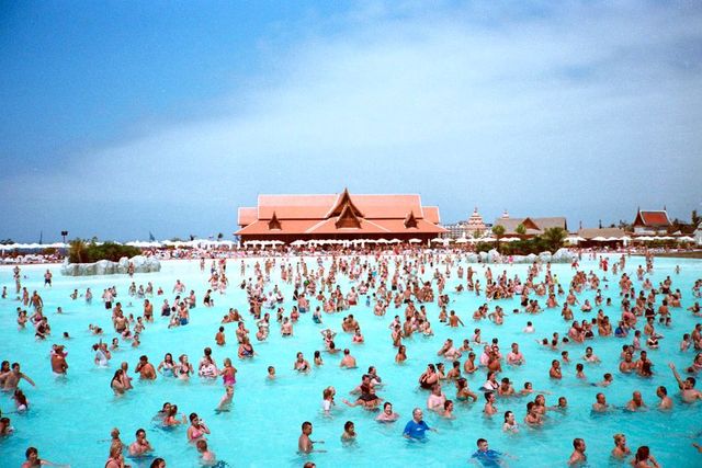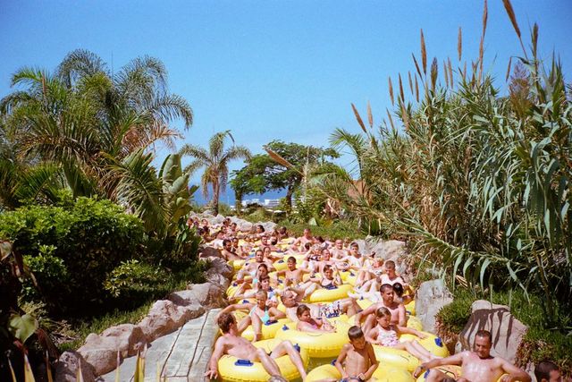 Ich war vor ein paar Jahren sehr interessiert an Massentourismus und bin während der Hochsaison für vier Tage hinzufahren. Vorher hatte ich schon Themenparks und Tourismus an sich fotografiert, nun hatte ich die Möglichkeit, beides gleichzeitig festzuhalten.