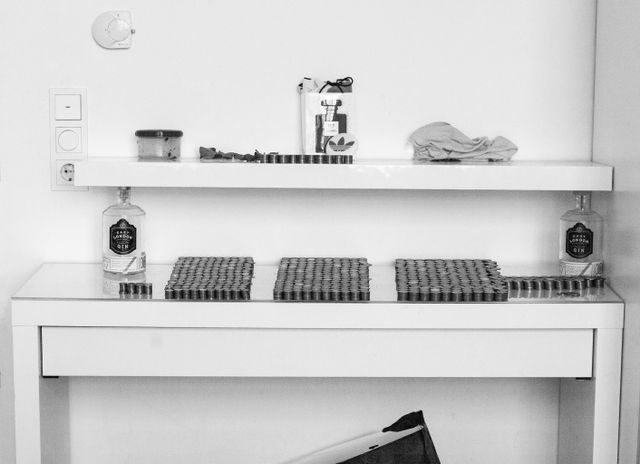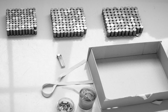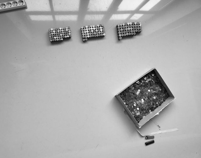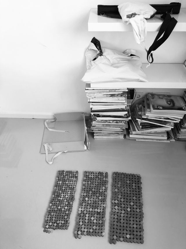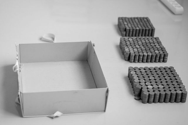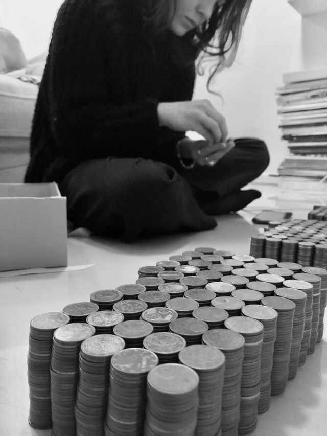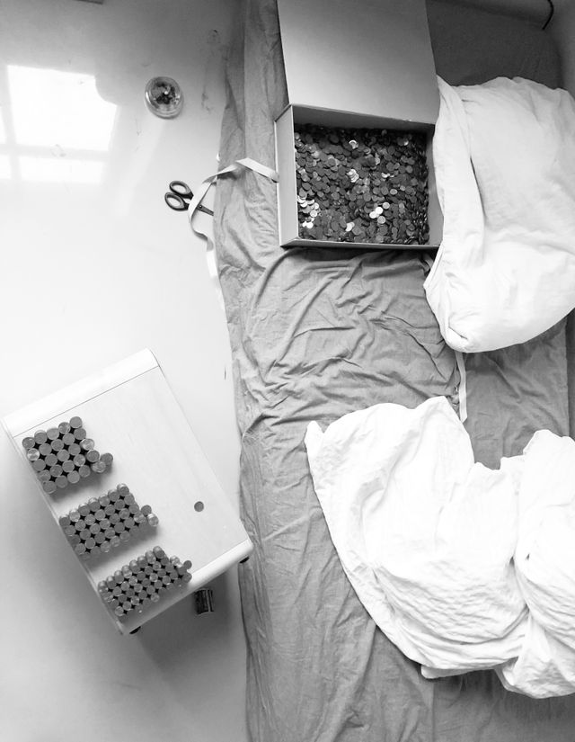 Meine Tochter fragte mich immer wieder nach Kleingeld, ich wusste nicht, was sie damit wollte. Irgendwann bemerkte ich, dass sie die Münzen in einer Box sammelte. Dann sah ich die Stapel in ihrem Zimmer. Deshalb heißt die Serie »Tesselate«. Das Wort bedeutet »etwas mosaikartig zusammenlegen«.