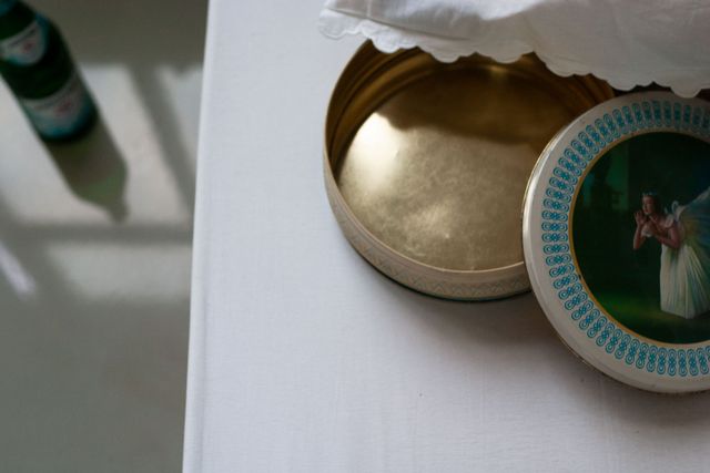 In diese Keksdose hat meine Tochter sich erbrochen, wenn sie nicht aus ihrem Zimmer kommen wollte. Die Dose ist für mich zum Symbol für diese Zeit geworden, darum steht sie am Anfang der Serie leer auf dem Bett. Sonst übergab sich meine Tochter auf der Toilette. Einmal hatte sie nicht abgeschlossen, und ich platzte rein.