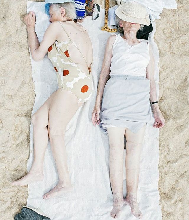 Ich mag das Bild der beiden alten Frauen sehr gerne, weil es so viele Details, so viel Stil und auf seine Weise Schönheit enthält. Roter Lippenstift, wie ihn die Eine trägt, ist ein fantastisches Detail, das viel verrät. Dieses Bild übermittelt mir sehr viel Eleganz. Es war das erste Foto, das ich an diesem Strand aufgenommen hatte und mich motivierte, eine ganze Reihe daraus zu machen.