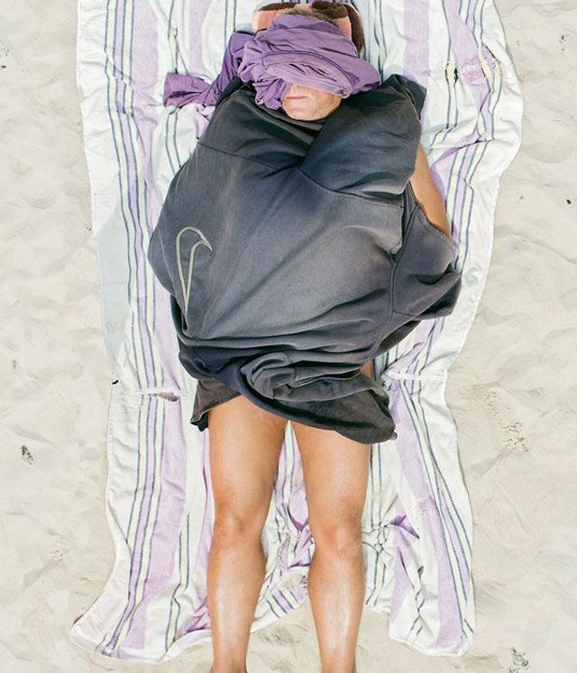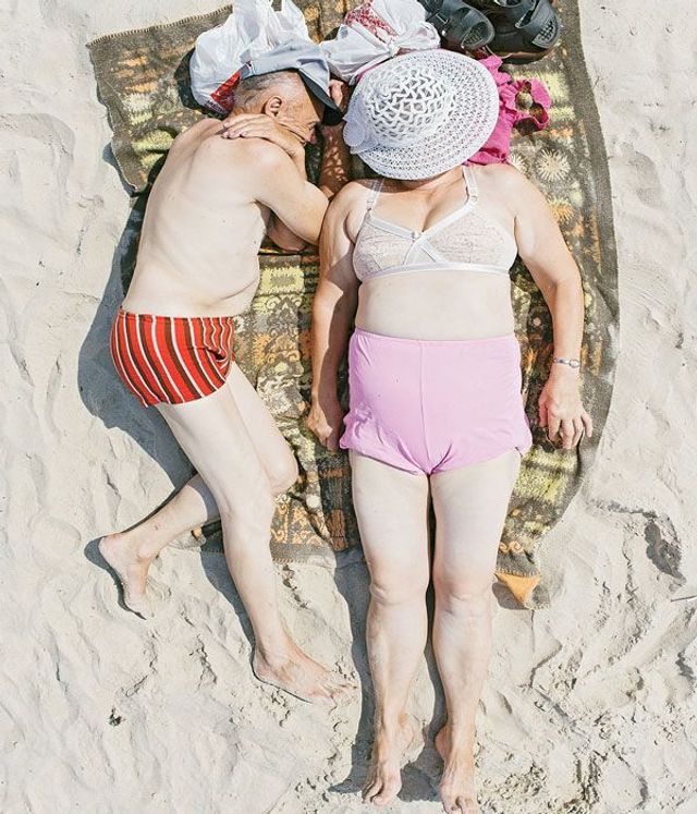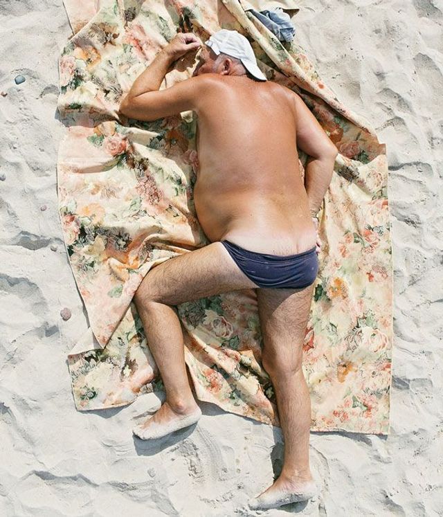 Tadao Cern: Ich war eher fasziniert, wie sehr ein solch anonymer Urlaubsort - eine Comfort Zone - das Verhalten der Menschen beeinflussen kann. Im Alltag versuchen wir permanent unsere Defizite, physische wie psychische, zu verstecken. An einem Strand jedoch vergessen wir all das. Wir bewegen uns freier und interessieren uns nicht mehr für das Bild, das andere von uns haben könnten. Ich habe mich gefragt, ob es an der einfachen Tatsache liegt, dass alle am Strand so denken - und wenn ja, dann würde ich mir wünschen, diesen Gedanken mit über die Grenze dieses Ortes hinaus zu tragen. Eigentlich wollte ich selbst bloß Urlaub am Meer machen, weil ich seit Ewigkeiten nicht mehr dort gewesen war. Die Idee der Fotoreihe kam mir erst, als ich die vielen Charaktere dort liegen sah, leider ohne passendes Equipment.