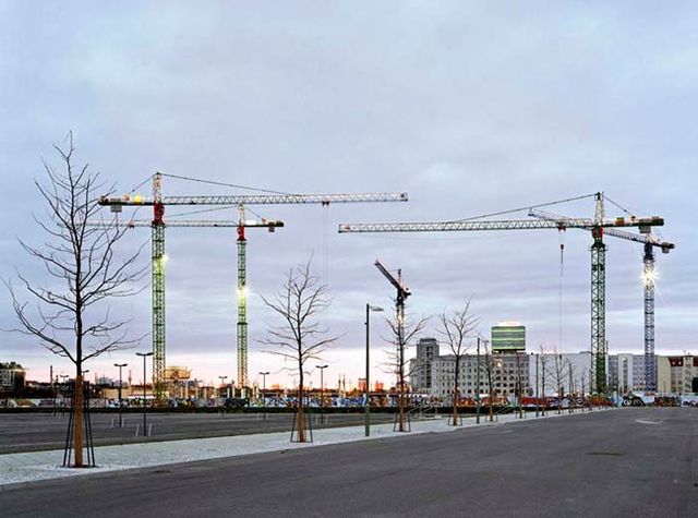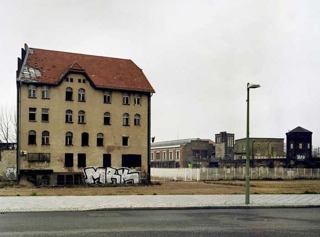 Ich bin Berliner, fahre oft einfach herum und suche nach neuen Motiven. Wenn mir ein Ort zusagt, notiere ich ihn mir. Am Wochenende fahre ich dann morgens früh um fünf Uhr mit meiner Großformatkamera los. Um diese Uhrzeit sind noch keine Menschen auf der Straße. Höchstens ein paar Betrunkene. Das Licht zwischen Tagesanbruch und Sonnenaufgang ist ganz besonders, so fahl und grau. Wie ein „Unlicht". Zu dieser Tageszeit wirkt alles leblos und nackt. Tausendmal Gesehenes kommt einem plötzlich fremd vor. Ihre Fotografien wirken irgendwie traurig. Es fehlen dann doch die Menschen, oder?