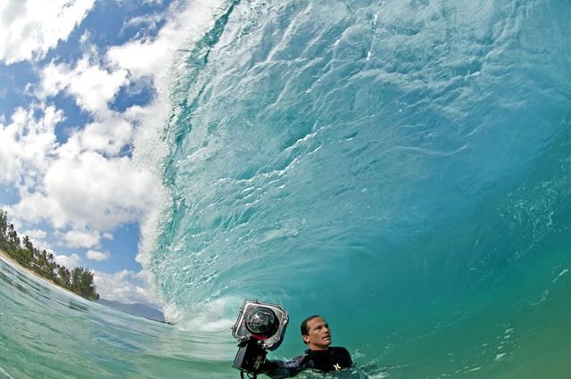 Ich lebe nur fünf Minuten von den Stränden entfernt, an denen ich meistens fotografiere. Meine Heimat, die Nordküste von Oahu, ist weltberühmt für ihre großen Wellen. Das Wasser ist sehr klar. Der weiße Strand und die Palmen geben eine super Kulisse ab. Ich habe aber auch schon in Kalifornien, Japan, Brasilien und Tahiti fotografiert.