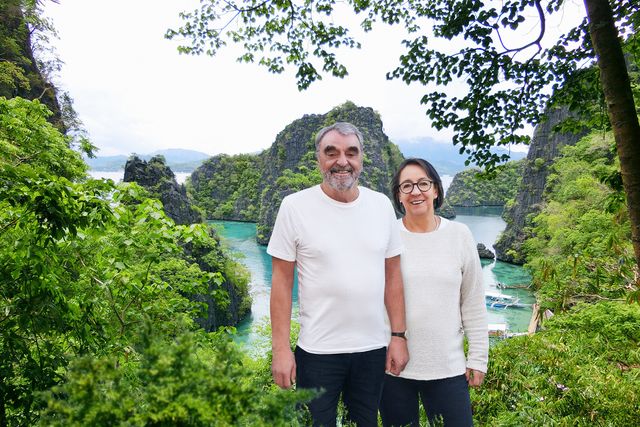 Ich habe bewusst viel Freiraum und Interpretationsmöglichkeiten gelassen. Die Vorgabe war nur, drei Fotos zu erstellen mit meinen Eltern darauf: Der erste Orte sollte eine Landschaftsaufnahme von einem Wunschort des Retuscheurs sein; dann sein oder ihr Wohnzimmer und als drittes ein Sightseeing-Ort.