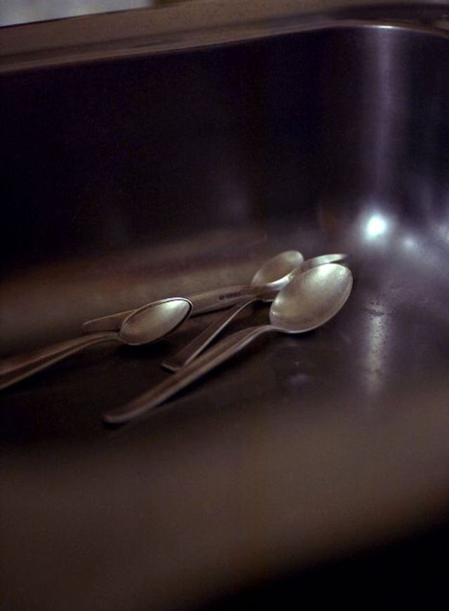 Ulla Deventer: Ich wollte mich bei dieser Serie mit meiner Vergangenheit auseinandersetzen. Ich verbinde mit diesem Haus viel, es steht gegenüber von meinem Elternhaus. Dort wohnte lange Zeit eine ältere Frau, zu der ich eine besondere Beziehung hatte. Ich wusste, dass dieser Ort nicht mehr lange bestehen wird, da die Frau schon über 90 Jahre alt war und bald sterben werden würde. Von daher war das Fotoprojekt eine Möglichkeit, mich mit der Trennung von der Frau und dem Umfeld meiner Kindheit zu beschäftigen. Inwiefern ist der dargestellte Abschied echt oder inszeniert? Zum Beispiel die Löffel in der Spüle...