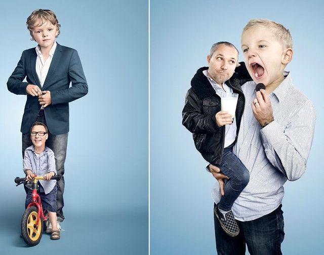 Es war anders. Also, ich habe einmal Profifußballer für eine Charity-Aktion fotografiert, zur Weltmeisterschaft 2010. Während der Nachbearbeitung haben wir einfach mal die Köpfe größer und kleiner gemacht, das war durchaus lustig, dann haben wir die Köpfe einzelner Spieler getauscht - dabei kamen wir auf die Idee, das Ganze mit Kindern und Erwachsenen zu probieren. Es gab damals glaube ich schon die Webseite manbabies.com, wobei wir die Idee nicht geklaut haben, das möchte ich dazu sagen. Und unsere Bilder sind viel aufwendiger nachbearbeitet.