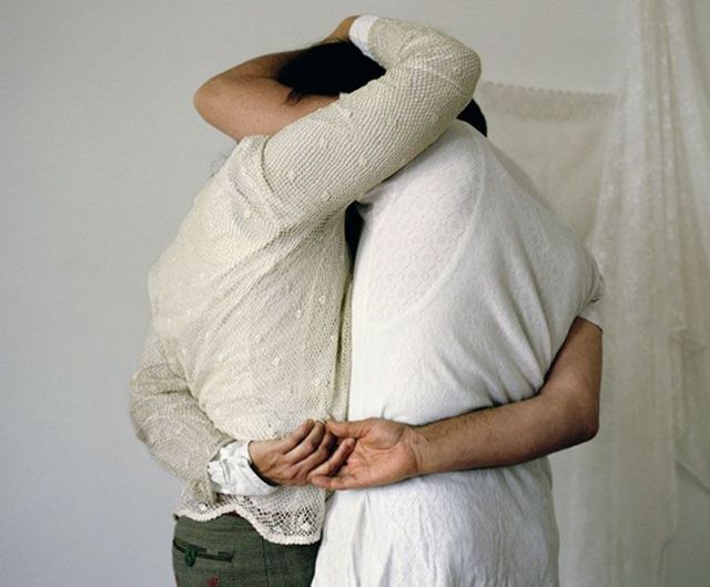 Ich habe ihnen Begriffe genannt, Bilder gezeigt, und manchmal war die Anweisung "Verknotet euch, so dass kein Raum zwischen euch bleibt". Die spontanen Reaktionen der Paare ist für die Arbeit sehr wichtig gewesen. Die innigen Umarmungen sind wie sprechende Formen oder die verschiedenen Situationen einer Beziehung: Manche sind tänzerisch-leicht, andere ruhend, wieder andere sehr dynamisch.