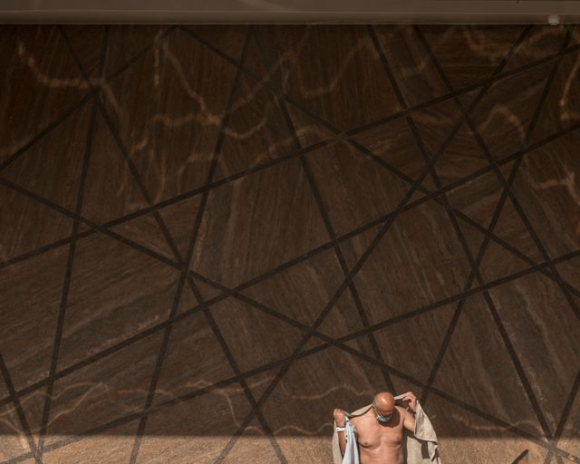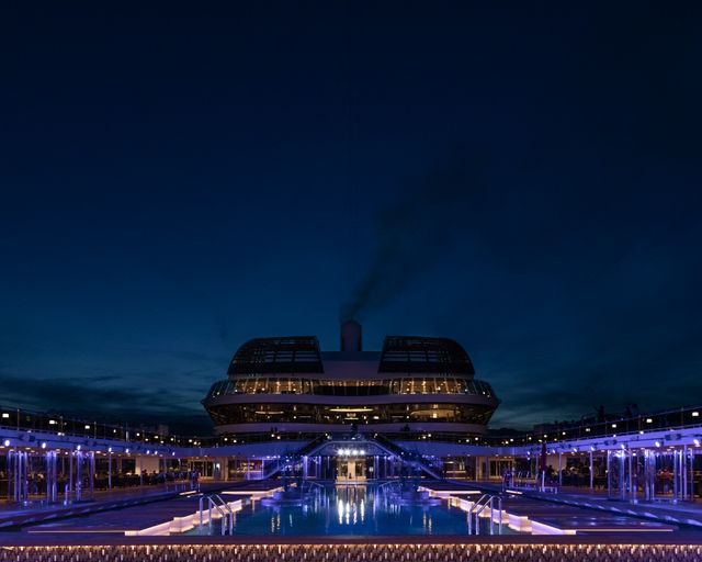 Davide Bertuccio: Die MSC Grandiosa ist das erste Schiff gewesen, das nach der ersten Welle wieder in See gestochen ist und Reisen im Mittelmeer durchgeführt hat. Besonders Norditalien hat COVID im Frühjahr stark getroffen, meine Aufträge als Fotograf wurden abgesagt und ich saß in meiner Wohnung in Mailand fest. Nicht nur mein Leben, sondern unser aller Alltag hat sich verändert und natürlich auch wie wir reisen. Ich wollte auf dem Kreuzfahrtschiff diese neue Normalität fotografieren.