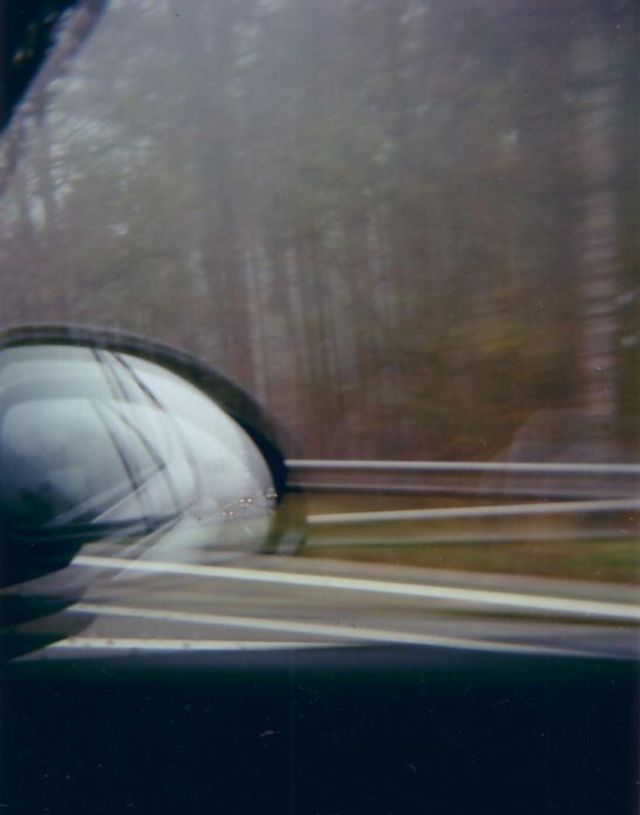 Marinette Fischer: Ich habe meine damalige Fernbeziehung dokumentiert, ich war also auf dem Weg zu meinem Freund, von München nach Heidelberg, jeweils dreieinhalb bis vier Stunden. Die Idee dazu entstand durch ein Projekt an der Hochschule München namens "Visuelles Tagebuch", mit der Themenvorgabe: "Unterwegs ist man nicht nur auf Reisen, sondern auch ständig mit sich selbst." Ich wollte das ständige Unterwegssein zwischen zwei Städten, zwischen ich und wir festhalten, dafür habe ich mir eine alte Mittelformatkamera gekauft und mit Mehrfachbelichtungen gearbeitet.