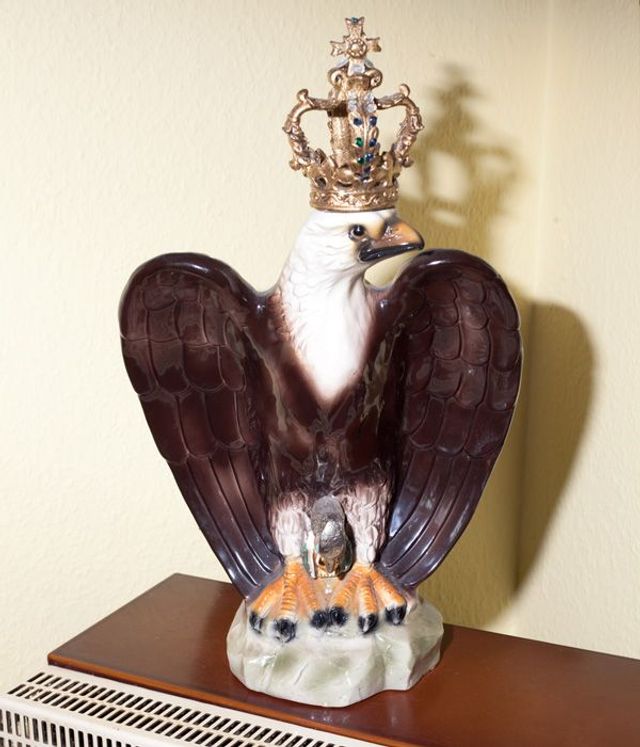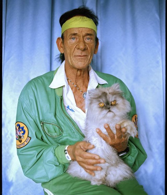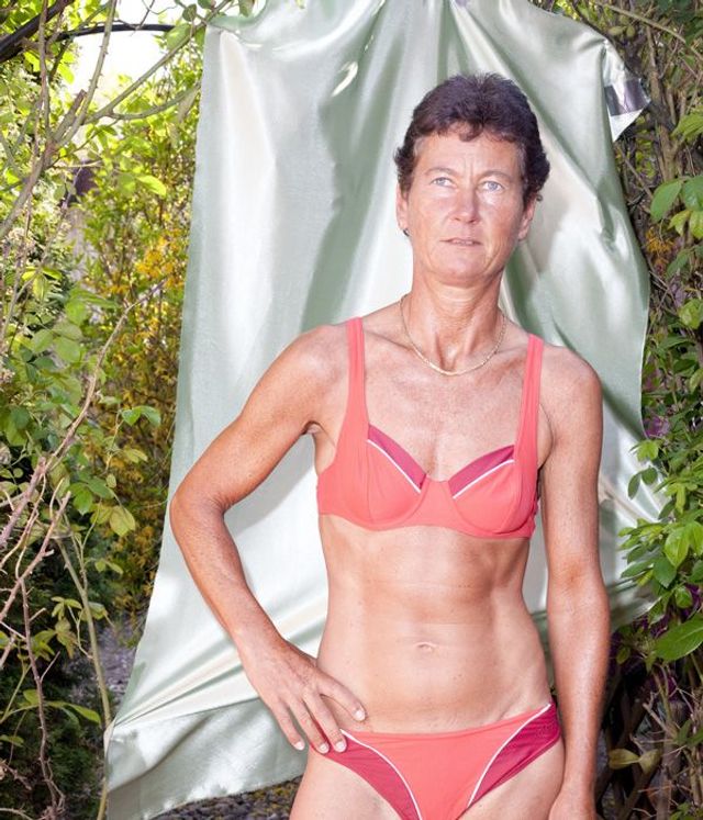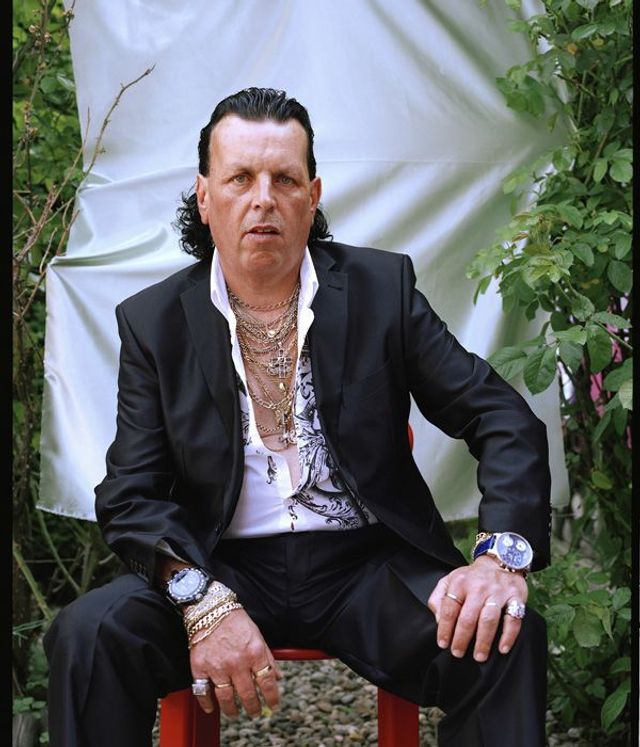 Obwohl mein Projekt keine Dokumentation ist, gibt es durchaus solche Elemente: Ein Teil der Menschen, die ich ausgesucht habe, sind mir auf der Straße begegnet. Werner zum Beispiel - ein Autohändler mit Vokuhila-Schnitt und viel Goldschmuck am Körper. Er stand genau so vor mir. Ich bin später noch bei ihm zu Hause gewesen und habe die Kleidung fürs Foto aus seinem Kleiderschrank mit ihm zusammen ausgesucht. Einige habe ich drei, vier Mal besucht, mit ihnen Kaffee getrunken und einfach nur zugehört, bevor ich überhaupt ein einziges Foto gemacht hatte. Die Bilder wurden auch bei ihnen zu Hause aufgenommen. Meine Inszenierung beginnt bei der einfachen Bühne, die ich mit ein bisschen Stoff und Gaffa-Band improvisiert habe. Die Modelle konnte ich so vom Betrachter entfernen, sie erheben und ihre Künstlichkeit betonen.
