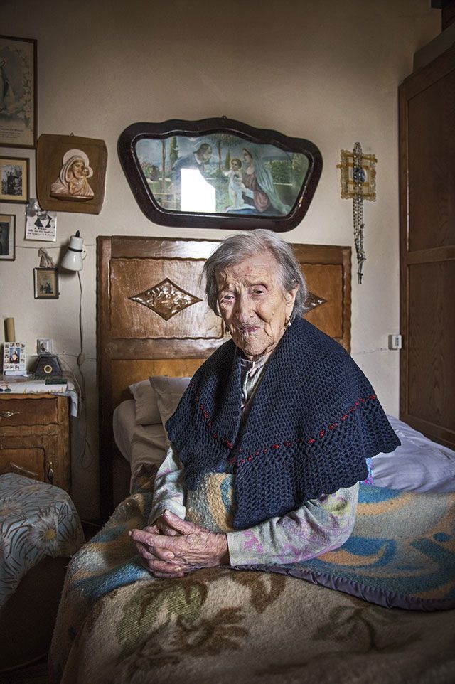 Ich fotografiere seit mehr als zehn Jahren ganz bewusst alte Menschen. Im Sommer 2015 hatte ich die Möglichkeit, Susanah Mushatt Jones zu fotografieren, eine US-Amerikanerin, die bis zu ihrem Tod im Mai diesen Jahres als der älteste Mensch der Welt galt. Nachdem sie verstarb, gehört dieser Titel nun der Italienerin Emma Morano. Sie ist so weit bekannt ist der letzte Mensch, der 1899 auf die Welt kam und drei Jahrhunderte miteinander verbindet. Ich habe mich dann während meines Urlaubs in Verbania am Lago Maggiore ein bisschen umgehört. Mithilfe eines Hotelportiers konnte ich Emma Morano ausfindig machen und Kontakt aufnehmen. Ich habe sie dann am Tag meiner Abreise zwischen dem Besuch des Pfarrers und ihrem Mittagessen fotografieren dürfen.