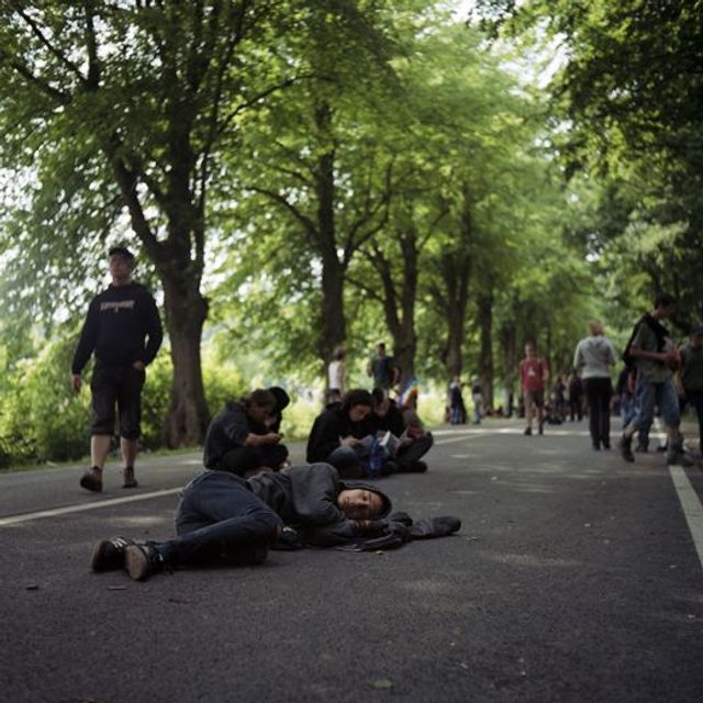 Ein Teil meiner Bilder ist 2007 in Heiligendamm entstanden. Ich war mittendrin in der Menge, die das Westtor blockiert hat. Die Diskussionen über das strategische Vorgehen, der lange Marsch über die Felder, die Frage, wie die Polizei reagieren wird - all das hat große Anspannung und Unsicherheit entstehen lassen. Als die Menge dann an ihrem Zielpunkt angekommen war, hat sich Erleichterung und Freude verbreitet, letztlich auch Erschöpfung. Diese Eindrücke habe ich versucht in meinen Bildern festzuhalten. Insbesondere auch Momente der Ruhe in einer solchen Ausnahmesituation - wie zum Beispiel eine Situation, in der ein Aktivist nach mehreren Tagen unter freiem Himmel am Straßenrand schläft. Welches Bild der Protestbewegung in Deutschland wollen Sie vermitteln?