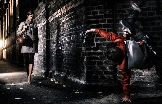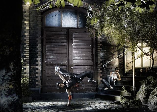 Das täuscht. Die B-Boy Reihe ist auf einem Breakdance-Battle in Kopenhagen entstanden. Ich habe da Jacky, der asiatische Tänzer aus der anderen Fotostrecke, begleitet, um ein bisschen mehr in die Szene eintauchen zu können. Die Bilder sind bei einem freien Training der eingeladenen Tänzer entstanden. Ich habe da diese total „coolen" B-Boys erlebt, von denen man eher erwarten würde, dass sie Mitglieder einer Gang sind als dass sie tanzen, die andererseits aber auch wahnsinnig sympathisch und offenherzig sind und die darüber hinaus sehr hart für ihre Sache trainieren. Genau diese Diskrepanz wollte ich mit den Bildern rüberbringen.