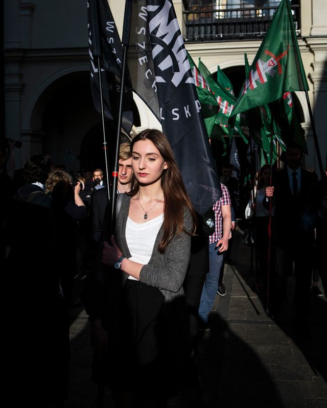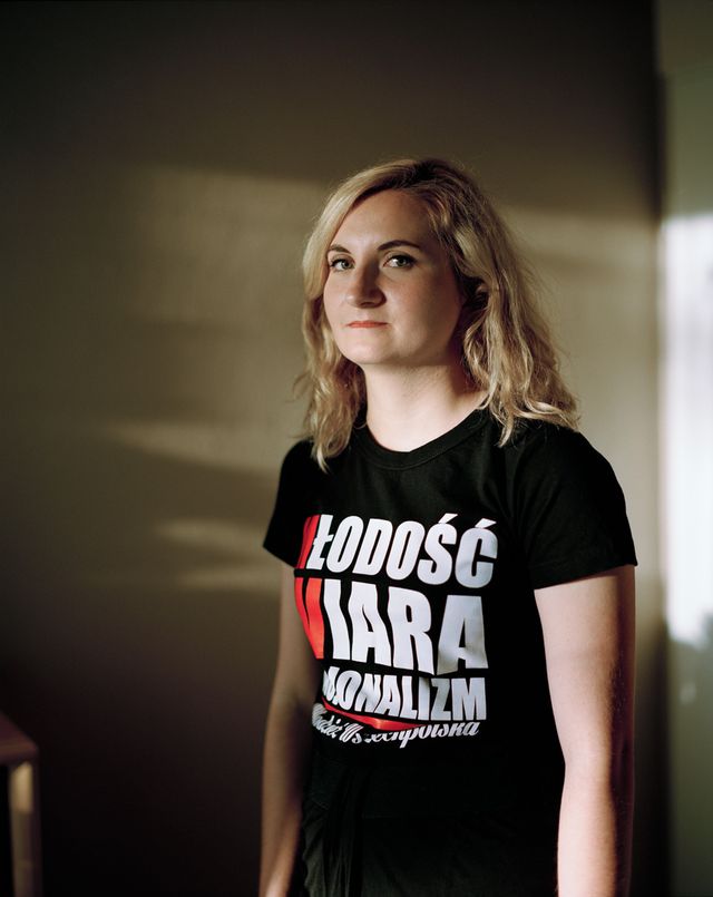 Agata Szymanska-Medina: Es war nicht einfach, denn Journalisten sind im rechten Milieu nicht gerne gesehen. Ich habe sehr viel in rechten Online-Foren und Facebook-Gruppen gelesen und anhand von Posts und Fotos herausgefunden, welche Frauen besonders aktiv sind und mit wem sie sich vernetzt haben. Ungefähr 50 von ihnen habe ich private Nachrichten geschrieben, dass ich Fotografin bin und für eine Ausstellung junge polnische Frauen porträtieren möchte, die politisch aktiv sind. Die meisten haben nicht reagiert, nur fünf bis zehn haben sich zurückgemeldet.