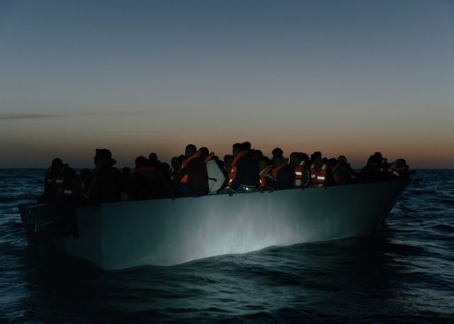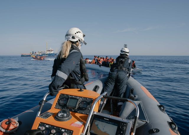 An Bord sind wir in Schichten eingeteilt, so dass immer jemand patrouilliert und mit dem Fernglas den Horizont absucht. Damit habe ich um vier Uhr morgens angefangen, an dem Tag, als wir das erste Boot entdeckt haben. Drei Stunden später haben wir gesehen, dass sich etwas bewegt, es hätte auch eine Welle sein können. Als wir näher kamen, habe ich das Schlauchboot entdecken können, die Menschen darauf. Es waren mehr als neunzig.