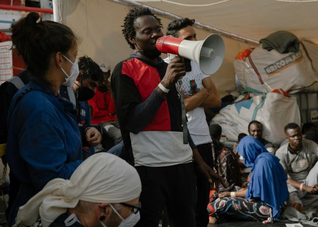 Als wir den sicheren Hafen in Sizilien angefahren haben, wurden die Geretteten mit Bussen abgeholt und etwa hundert Meter gefahren, um auf eine Fähre in Quarantäne zu gehen. Dort wurden sie auf Covid-19 getestet. Aus den italienischen Medien habe ich erfahren, dass es 28 Corona-Fälle innerhalb unserer Mission gab. Die Behörden kommunizieren fast nicht mit uns. Das ist Teil der Politik, die Seenotrettung versucht zu unterbinden.
