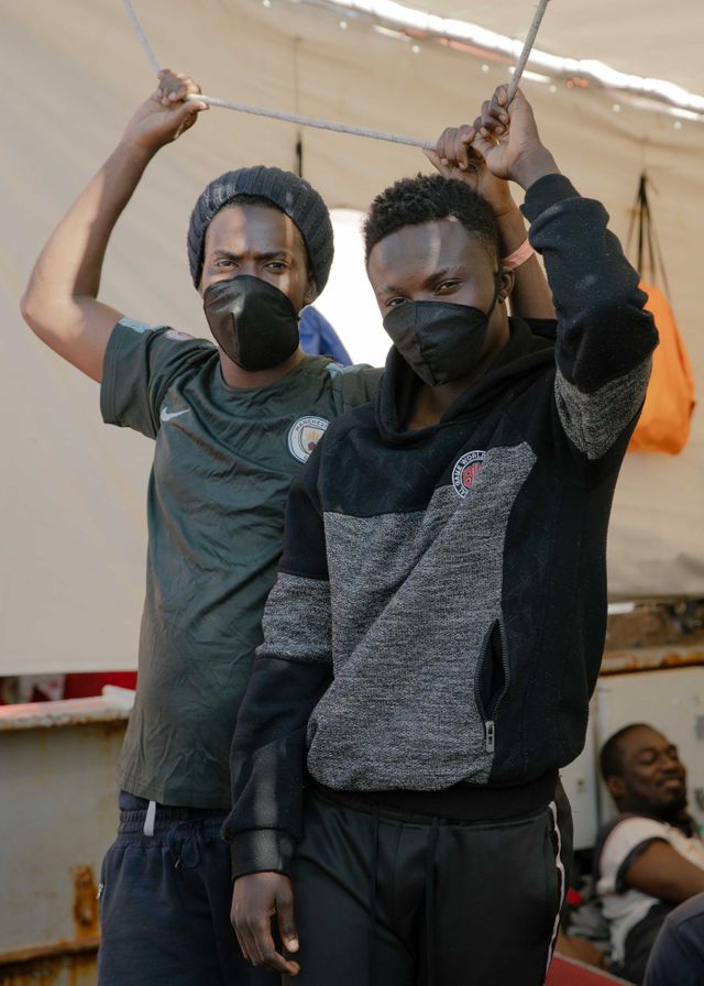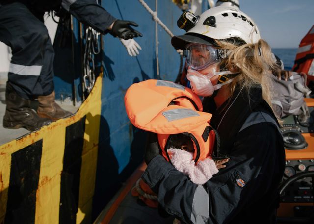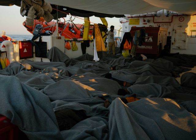Die Crew verteilt erstmal Decken, Masken und Essen, aber kein tolles Essen, sondern Notnahrung. Das sind Riegel, die viele Vitamine und Nährstoffe haben. Die Menschen haben oft schon eine längere Reise hinter sich, sie sind dehydriert und schwach. Auf der Krankenstation werden sie medizinisch versorgt. Eine Frau war hochschwanger, im achten oder neunten Monat, das Baby hätte jeden Moment kommen können. Wir haben die Menschen registriert, Fieber gemessen und versucht die zu isolieren, die symptomatisch waren.