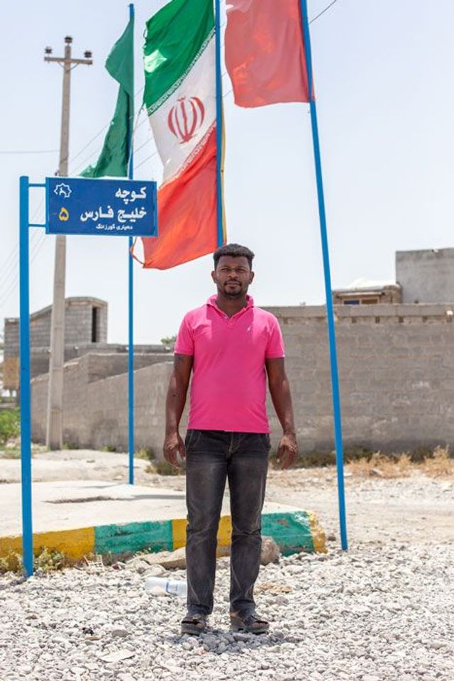 Obwohl jedes Bild für mich mit einer Geschichte verknüpft und somit besonders ist, wäre das wahrscheinlich das Foto mit dem kleinen Jungen am Strand. Es entstand in der ersten Woche meiner Aufnahmen in Bandar Abbas. Ich war im Khaje-Ata-Viertel unterwegs, einer Gegend nahe des Hafens. Es war nachmittags, die Sonne ging langsam unter, ich sah mehrere Jungs am Meer spielen, darunter einen mit einer orangenfarbenen Badehose. Als ich ihn fragte, ob ich ein Bild von ihm schießen darf, blieb er mit seinem Stock stehen und formte seinen Körper. Es war nur einen kurzer Augenblick, in dem er sich aus seinem Kindsein herauslöste. Als ich mein Gesicht von der Kamera entfernte, fing er wieder an zu spielen. Was mir an dem Bild gefällt ist die Emotionalität, die es vermittelt. Was der kleine Junge nicht wusste: dass er genau dort spielte, wo seine Vorfahren vor einigen Jahrhunderten Fuß fassen mussten.