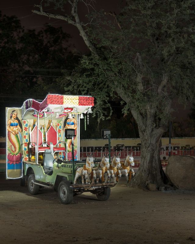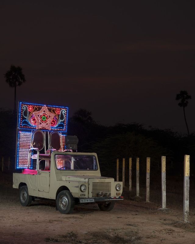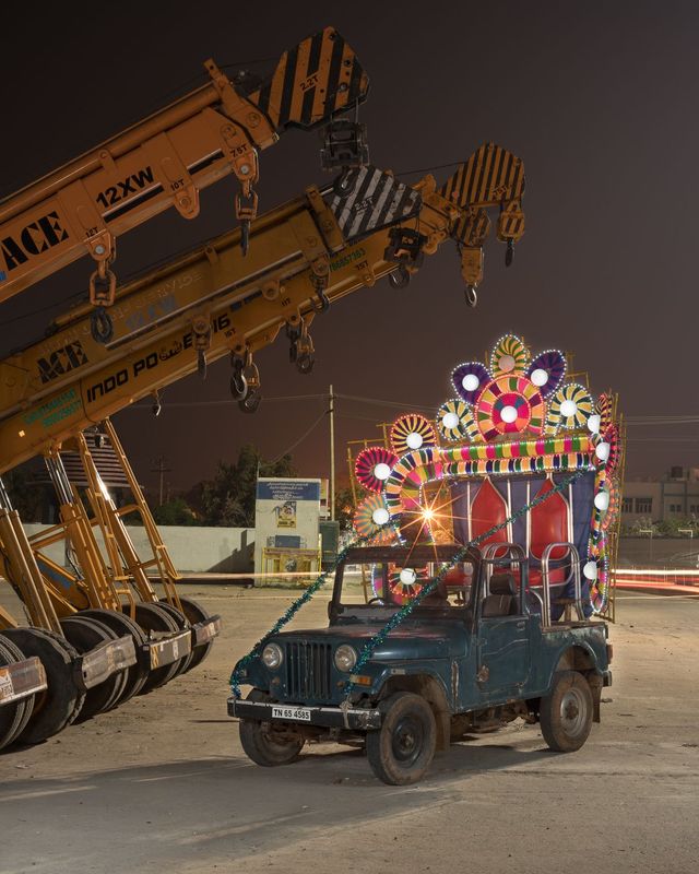 Eigentlich war es Glück. Ich besuchte die Stadt Thiruvannamalai im Süden von Indien für ein anderes Projekt und kam zufällig an dem Ort vorbei, wo diese Autos geparkt waren. Ich war total begeistert, ich hatte so etwas noch nie gesehen. Mich reizte die Idee, sie komplett ohne Menschen und bei Nacht zu fotografieren, denn nur dann sieht man die Lichter. Das schafft ein Gefühl von Einsamkeit, finde ich.