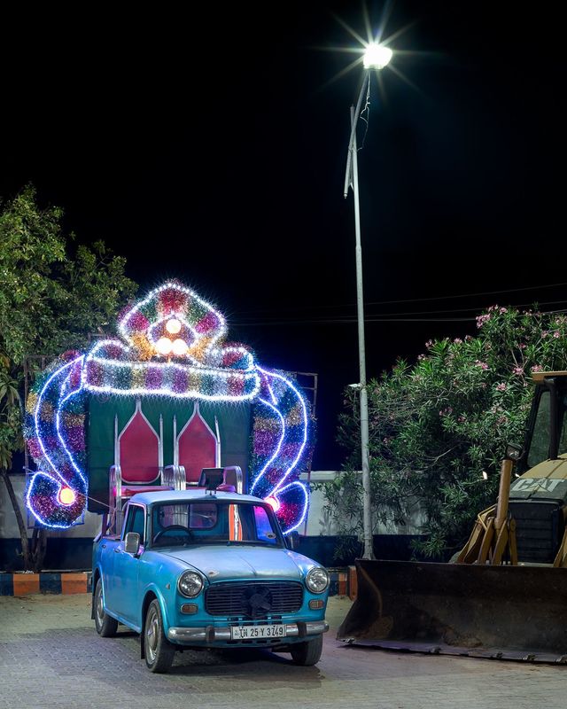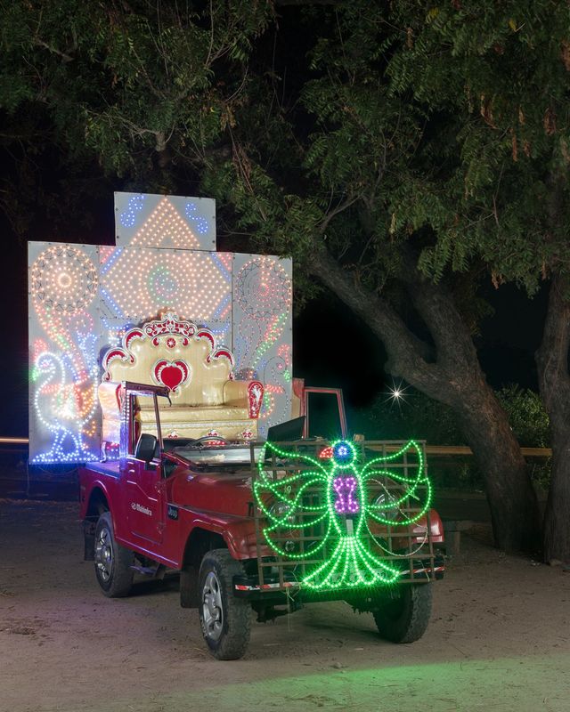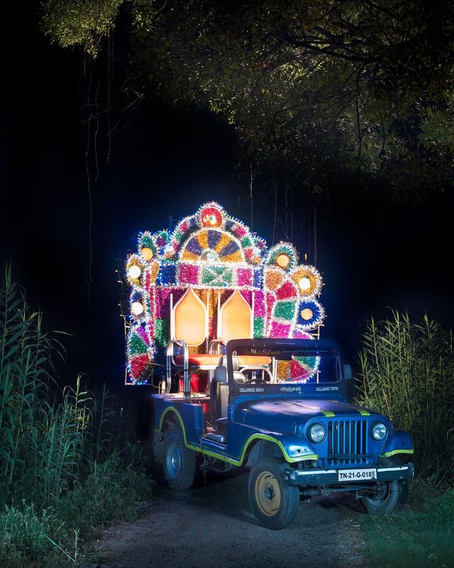 Die Autos werden hauptsächlich in den Orten Thiruvannamalai und Kanchipuram hergestellt. Bestimmt 80 Prozent der Wagen kommen von dort. Es werden fast nur alte Modelle eingekauft, die auch oft verbeult und dementsprechend billig sind. Dann werden die Autos umgebaut und die »Disco«, also die Verzierung mit den Lichtern, angebracht. Man kann sie komplett abnehmen. Wenn die Autos also nicht für eine Hochzeit gemietet sind, können die Besitzer sie normal benutzen.