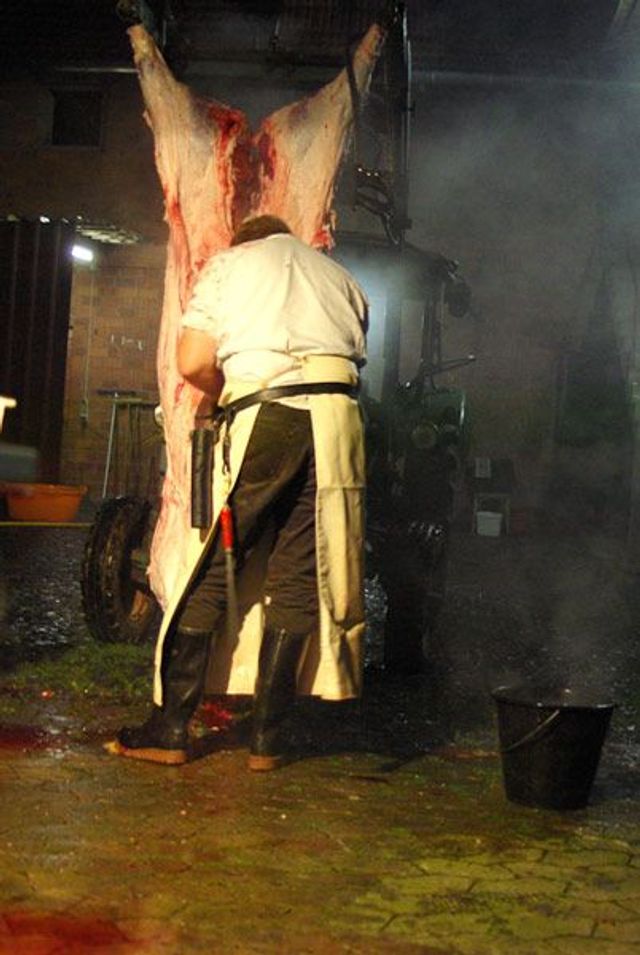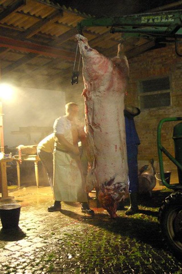 Wenn man etwas isst, sollte man wissen, was man isst und woher es kommt. Der Anblick von toten Tieren bzw. den Teilen von toten Tieren mag ungewohnt oder eklig sein, aber es gehört eben dazu. Das Steak hat nicht immer so ausgesehen, dessen sollte man sich immer bewusst sein. Die Hausschlachtung ist die direkteste Art, an Fleisch zu kommen. Der Brauch ist in Deutschland aber schon fast ausgestorben. Ich wollte das unbedingt noch einmal erleben und habe mir daraufhin eine Hausschlachtung auf einem Bauernhof in Niedersachsen angeschaut. Dort kann man eindrücklich verfolgen, wie die berühmte Eichsfelder Mettwurst entsteht - von Anfang an. Das hat mich gar nicht geekelt, im Gegensatz zur modernen Großschlachtereien, da wird einem wirklich schlecht. Minderwertiges Fleisch erkennt man übrigens spätestens daran, dass es beim Anbraten stinkt.