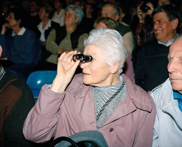 Weniger witzig aber besonders war der Moment, als mein Fotolaborant beim Entwickeln der Bilder die alte Dame mit dem Opernglas wiedererkannt hat. Es handelte sich um seine Tante, die zu dem Zeitpunkt, als er die Bilder ausbelichtet hat, bereits verstorben war.