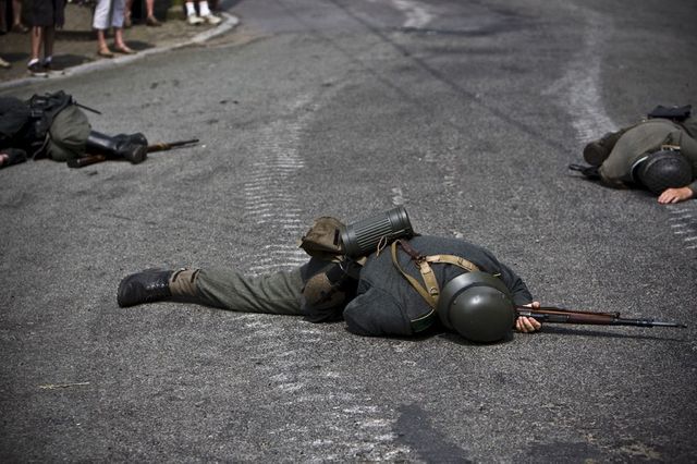 Aus den verschiedensten Gründen: Beim Reenactment trifft man auf ein Gemisch aus Waffenfanatikern, Geschichtsinteressierten, Nazis und großen Kindern, die es einfach lieben, Krieg zu spielen. Dann sind da 80- bis 90-jährige Veteranen, die ihre Vergangenheit nie richtig ablegen konnten. Und es gibt auch Schüler, die ihr ganzes Taschengeld ausgeben, um auf Flohmärkten und im Internet originale oder nachgemachte Uniformen zu kaufen. Auf keinen Fall kann man die Teilnehmer alle über einen Kamm scheren.
