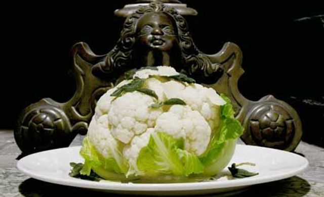 Den Blumenkohl etwa 20 Minuten in Wasser kochen oder dämpfen – bis er bissfest ist. 50 g Butter in einer heißen Pfanne schmelzen, etwas Olivenöl zugeben. Ein Bund Salbeiblätter und zwei gehackte Knoblauchzehen unterrühren und so lange rösten, bis der Knoblauch goldgelb und die Salbeiblätter knusprig sind. Blumenkohl auf einem Teller anrichten und mit der Sauce übergießen. Mit Parmesanflocken bestreuen und sofort servieren. BASISZUTATEN: Oliven- und Pflanzenöl, Obst- und Balsamico-Essig, Butter, Mehl, Salz, Pfeffer, Gewürze, Zucker, Senf, Sojasauce, Zitrone, Weiß- und Rotwein, Zwiebeln, Knoblauch, Sahne, Brühe