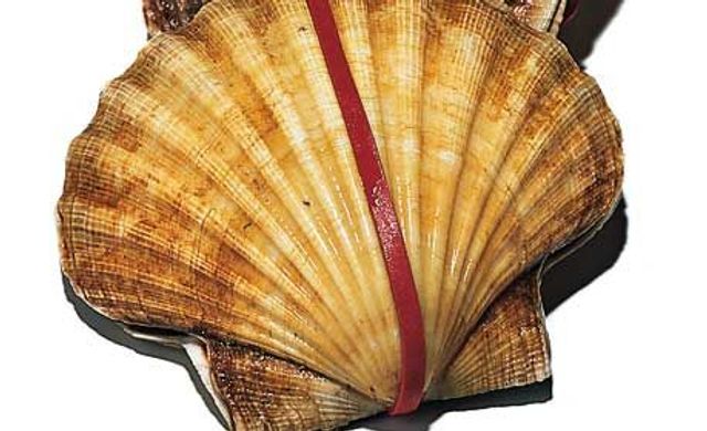 Die unteren Schalenhälften von 4 Jakobsmuscheln gut auswaschen und trocknen. In grobes Meersalz setzen und bereithalten. 2 Fenchelknollen in feine Scheiben schneiden, den Strunk herausschneiden, Abschnitte aufbewahren. 2 Orangen filetieren, aus der restlichen Frucht den Saft auspressen. Fenchelabschnitte in Olivenöl anschwitzen, salzen, Korianderkörner zugeben, mit Orangensaft ablöschen. Orangenfond einreduzieren, anschließend passieren, mit etwas Olivenöl aufmixen, mit Zucker und Salz abschmecken. Fenchelscheiben kurz in Salzwasser kochen, mit den Orangenfilets zum Orangenfond geben. Jakobsmuscheln mit Pfeffer und, falls vorhanden, Sake würzen, beidseitig je 2 Minuten in Olivenöl braten. Orangenfenchel in die Muschelschalen geben, die Jakobsmuscheln aufsetzen. Mit Basilikumblättern garnieren.
