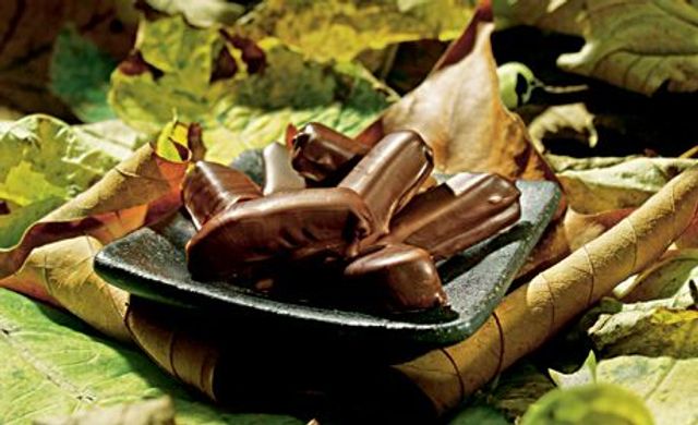 250 g eingelegten/konfierten Ingwer aus dem Glas nehmen, auf ein Gitter legen und über Nacht abtropfen lassen. Ingwerstücke in Stäbchen schneiden und diese erneut kurz trocknen lassen. Die Stäbchen in Kakaopulver wälzen, in ein Sieb geben und das überschüssige Pulver absieben. 200 g dunkle Kuvertüre raspeln, teilweise in heißem Wasserbad schmelzen, mit restlicher kalter Kuvertüre mischen, Ingwerstäbchen mit warmer, dickflüssiger Kuvertüre überziehen, auf Backpapier trocknen lassen, dann erneut mit Kuvertüre überziehen. Heinz-Richard Heinemann, 45, betreibt in Berlin drei Restaurants. Sein aktuelles Backbuch »Schokoladenträume« ist im Südwest-Verlag erschienen.