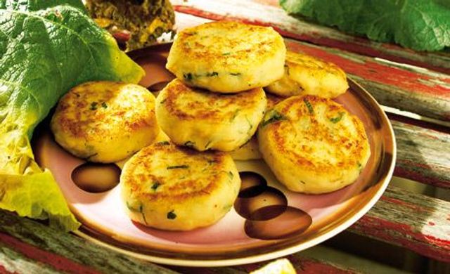 450 g mehlige Kartoffeln gar kochen und zerdrücken. Mit 450 g gekochtem oder gegrilltem Fisch (Schellfisch oder Lachs oder beides zusammen) und klein geschnittener Petersilie vermischen, salzen, pfeffern, in kleine Fischpflanzerl formen, in Mehl rollen. In einer Pfanne zu gleichen Teilen Butter und Öl erhitzen und Fischpflanzerl von beiden Seiten goldbraun braten.