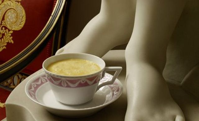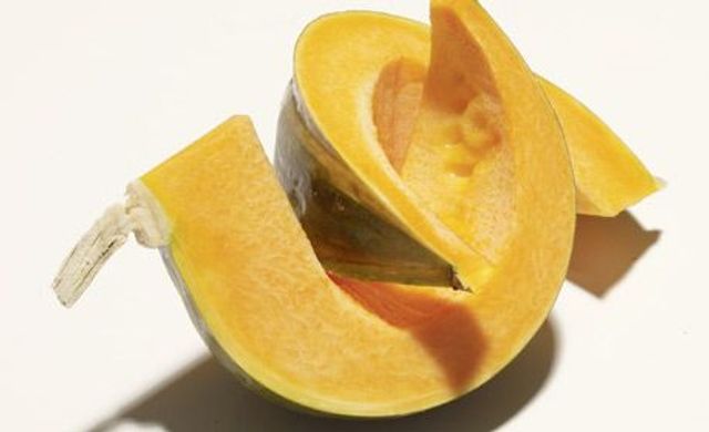 1/8 Muskatkürbis und 3 Äpfel schälen und würfeln, zusammen mit einer Knoblauchzehe, 200 g Karotten und 1 Metzgerzwiebel (beides grob gewürfelt) in 50 g Butter anschwitzen und mit 800 ml Hühnerbrühe auffüllen. Die Suppe ca. 20 Minuten mit Deckel köcheln lassen, dann pürieren, passieren und mit 400 ml Sahne, Salz, Zucker, Pfeffer, Zitronensaft und 1 EL Currypulver abschmecken. Suppe mit einem Stabmixer leicht aufschäumen und in Tassen füllen.