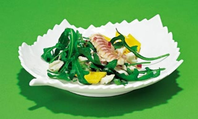 350 g Schellfisch-Filet bei mittlerer Hitze in einem Topf mit Wasser pochieren, heraus-nehmen, auf Küchenkrepp abtropfen und abkühlen lassen. 2 gehackte rote Zwiebeln und 1 in Scheiben geschnittene Mango mit 2 Handvoll Rucola mischen, dazu den Saft und die abgeriebene Schale einer Limette geben, salzen und pfeffern und mit etwas Olivenöl unterheben. Den abgekühlten Fisch zerteilen und unterheben, einige schöne Stücke mit ein paar Mangoscheiben darauf dekorieren. BASISZUTATEN: Oliven- und Pflanzenöl, Obst- und Balsamico-Essig, Butter, Mehl, Salz, Pfeffer, Gewürze, Zucker, Senf, Sojasauce, Zitrone, Weiß- und Rotwein, Zwiebeln, Knoblauch.