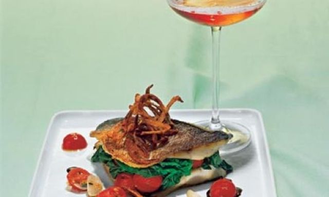 Dorade Mallorquin 125 g gehackter Blattspinat, 50 g Zwiebel in Streifen, 100 g halbierte Kirschtomaten vermengen mit 1 TL Thymian, 1 TL Oregano, 1 TL süßem Paprikapulver, 100 ml trockenem Weißwein, 100 ml Olivenöl, 2 gehackten Knoblauchzehen, Salz, Pfeffer; eine Stunde im Kühlschrank durchziehen lassen. 4 Doraden à 400 g filetieren, mit Salz, Pfeffer, Zitronensaft würzen und auf der Hautseite ca. eine Minute in Olivenöl anbraten. 4 von den 8 Filets mit der Hautseite nach unten auf ein mit Backpapier bedecktes Backblech legen, darauf die Mallorquin-Füllung, mit den restlichen Filets abdecken, im Ofen bei 160 Grad Umluft etwa 8 Minuten garen. 100 ml Balsamicoessig und 15 g Zucker auf die Hälfte einköcheln. 12 Kirschtomaten, 4 Knoblauchzehen mit Schale und 4 Thymianzweige in Olivenöl anbraten, salzen, pfeffern. 100 g Zwiebelringe mit Salz, Pfeffer, Paprika würzen, mit Mehl bestäuben, in Pflanzenöl ausbacken. Dorade mit 3 Kirschtomaten, einer Knoblauchzehe, frittierten Zwiebelringen und Thymian dekorieren.Isaac González, 37, kocht im »Dorint Royal Golfresort« in Camp de Mar auf Mallorca.BASISZUTATEN: Oliven- und Pflanzenöl, Obst- und Balsamico-Essig, Butter, Mehl, Salz, Pfeffer, Gewürze, Zucker, Senf, Sojasauce, Zitrone, Weiß- und Rotwein, Zwiebeln, Knoblauch, Sahne, Brühe Nächste Woche: »Knuspriger Spanferkelbauch mit Weißkraut und Datteln« von Stefan Hofer.