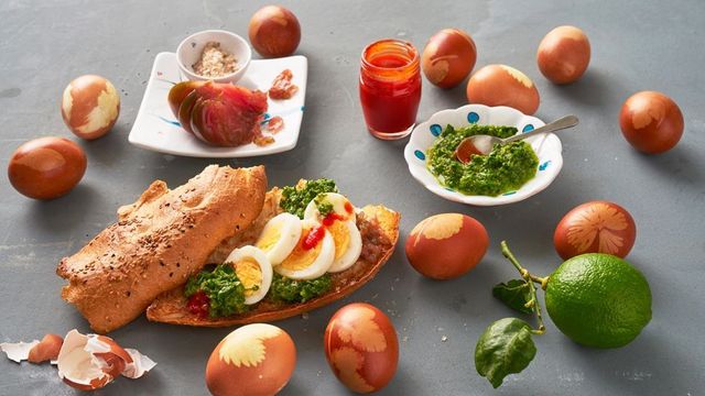 Der Maler als Vertreter der sogenannten Neuen Leipziger Schule und malt Bilder, die Ruhe ausstrahlen. Für sein Osterei-Werk für das SZ-Magazin zerschlug er ein Hühnerei, zerstieß die Schale und rieb sie fein. Das Pigment verrührte er so lange mit dem Eigelb und dem Eiweiß, bis eine buttrige Masse entstand. Ei ist eines der ältesten Bindemittel in der Malerei, so arbeiten Künstlerinnen und Künstler seit Jahrhunderten. Die Masse trug Eitel auf eine weiß grundierte Holzmaltafel auf, vom Ei ist nun nicht mehr viel zu sehen.
