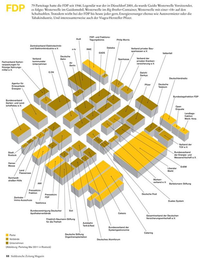 Die Firmen zahlen gutes Geld dafür, dass sie ihr Zeug verteilen dürfen. Und das brauchen die Parteien dringend, um sich die teuren Parteitage überhaupt leisten zu können. Fairer Deal, eigentlich. Wird aber trotzdem kritisch gesehen. Michael Koß, Politologe von der Universität Potsdam, beschäftigt sich seit Jahren mit dem Thema Parteienfinanzierung. Er sagt: »Den Parteien bleibt natürlich nichts anderes übrig, als nach Geldquellen zu suchen, schließlich regt sich jeder auf, wenn sie alles mit staatlichem Geld zahlen. Aber es wird heikel, wenn eine Gegenleistung erkennbar ist, und das ist bei den Parteitagen der Fall: Die Firmen dürfen ihre Produkte bewerben. Wenn Gegenleistungen bei Parteispenden verboten sind, warum sollten sie beim Sponsoring erlaubt sein?« Aber was hilft’s, ohne Sponsoring geht es nicht, da unterscheiden sich Parteitage nicht von Sport-Events und Kulturfestivals, von Sechstagerennen und SZ-Veranstaltungen. Die Frage ist: Was bringt es den Firmen überhaupt? Sind ein paar müde Delegierte wirklich so eine spannende Zielgruppe? Koß wundert sich: »Dass die Telekom die Trikots des FC Bayern für eine gute Werbefläche hält, versteht man sofort. Aber bei der FDP? Was verspricht sich Audi davon, da mit einem Stand vertreten zu sein?«