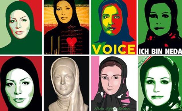 Auf den Demonstrationen der folgenden Tage tragen wütende Menschen Plakate mit dem vergrößerten Bild der vermeintlichen Märtyrerin vor sich. Bald zeigen sie das Foto auch auf T-Shirts und bauen in den Straßen Altäre um Neda Soltanis Foto. Die Demonstranten nennen die Frau auf dem Foto: »Engel des Iran«. Das Foto wird zum Symbol des Freiheitskampfes und Neda Soltani zu dessen Ikone.