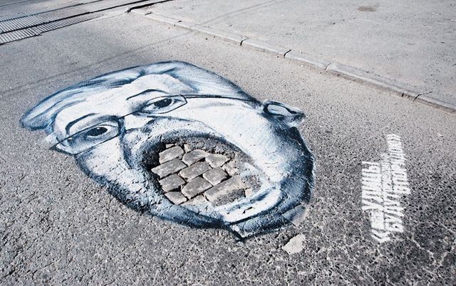 Manchmal werden sie das ja. Denken Sie nur daran, was Aktivisten 2011 mit den Schlaglöchern in Sibirien gemacht haben: Sie malten das Gesicht des korrupten Bürgermeisters drumherum, das Schlagloch selbst war der riesige Mund des Mannes, der Steuergelder kassierte, ohne die Straßen zu reparieren. Und wissen Sie, wie die Gemeinde reagiert hat? Sie hat die Farbe von der Straße entfernt, statt endlich die Löcher instandzusetzen. Wieder hieß die Wahl dumm gegen schwach, der Bürgermeister hat sich für dämlich entschieden. Aktivisten in Guatemala und Panama haben das gleich adaptiert. In Jekaterinburg hat man sogar das Dokument auf die Straße gemalt, in dem versprochen worden war, die Schlaglöcher zu reparieren. In den USA wurden Blumen in Schlaglöcher gepflanzt. Oder Eishockeypucks mit einem Sender hineingelegt. Jedesmal wenn jemand drüberfuhr, haben die Pucks einen Tweet gesendet: »Reparier mich«. Wir haben nie mit den Jungs gearbeitet, aber sie haben perfekt den Sinn von Dilemma-Aktivismus verstanden.