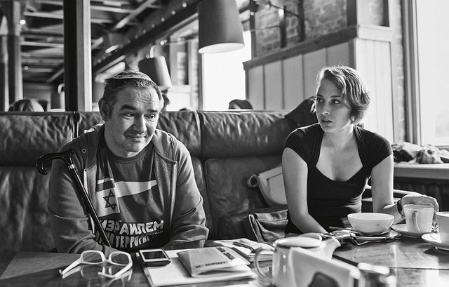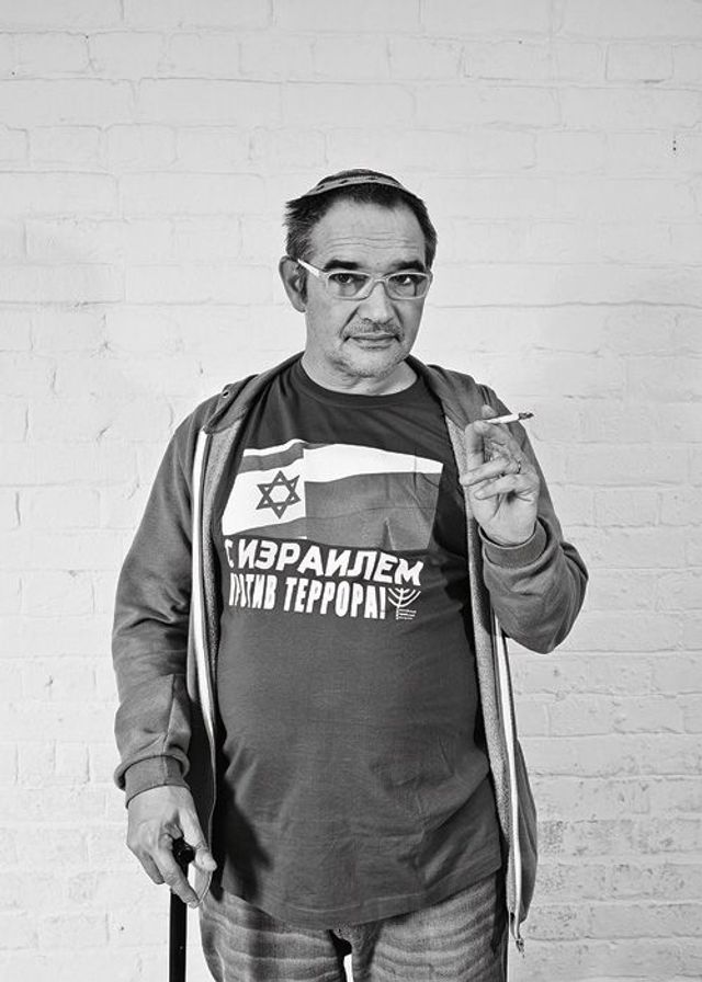 14.30 Uhr. Während sich Oleg Ljachowenko verabschiedet, steht plötzlich Anton Nossik am Tisch, etwas gebeugt an einem Gehstock mit silbernem Griff. Der Blogger gilt als Vater des russischen Internets, er hat Nachrichtenseiten wie gazeta.ru und lenta.ru gegründet, die professionell und kritisch berichtet haben, bis neue Eigentümer die Redaktionen auf Kreml-Linie brachten. Er trägt eine Kippa auf dem Kopf und ein Sweatshirt mit den Flaggen Russlands und Israels.