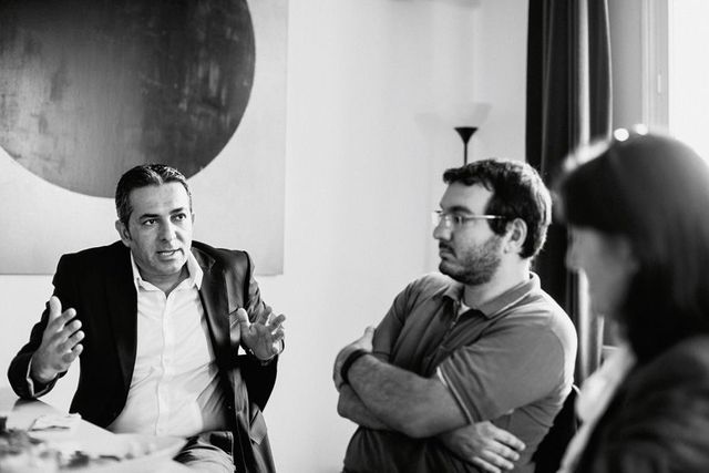 Zu unserem Gespräch haben wir Konservative und Liberale eingeladen, die gewöhnlich nur übereinander reden, aber fast nie miteinander. Dazu Architekten, Schauspieler, Musiker, die die Kultur von Istanbul prägen. Der Treffpunkt: ein herrschaftliches Istanbuler Stadthaus aus dem Jahr 1908 in der Suriye Passage, direkt an der berühmten Istiklal, der Einkaufs- und Ausgehstraße Istanbuls. Es ist 16 Uhr, Tee in Tulpengläsern wird serviert, als Nihal Bengisu Karaca den Raum betritt. Karaca ist eine der bekanntesten Kolumnistinnen der Türkei. Sie trägt Kopftuch und verteidigt die Politik der AKP. Für die Gezi-Demonstranten ist sie eine Reizfigur; auf Twitter folgen ihr mehr als 200 000 Menschen. Sie legt ein kleines iPad und ein iPhone auf den Tisch, mit dem auch sie unser Gespräch aufnehmen wird.