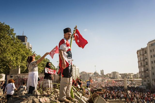 Istanbul, Ende September. Im Gezi-Park spielen Kinder. Die Blumenbeete sind frisch geharkt. Nur eine Gruppe Polizisten, die auf dem angrenzenden Taksim-Platz in der Sonne stehen – manche mit Plexiglasschutzschilden in der Hand, andere mit Maschinenpistolen – erinnert an das, was hier im Sommer geschehen ist: Zehntausende Menschen, die gegen die Politik des Ministerpräsidenten Recep Tayyip Erdogan auf die Straße gegangen sind. Als Antwort schickte die Regierung Wasserwerfer, die Luft war vernebelt vom Tränengas. Mindestens sechs Menschen sind während der Proteste, die bald das ganze Land ergriffen, ums Leben gekommen, der letzte am 10. September. Die Türkei scheint seitdem ein gespaltenes Land zu sein: Auf der einen Seite die jungen Demonstranten, auf der anderen die konservativen, religiösen Anhänger der Regierungspartei AKP. Es geht längst nicht mehr um einen Park, auf dessen Gelände eine Shopping-Mall gebaut werden sollte, sondern um die Zukunft der Türkei. Immer wieder kommt es zu Demonstrationen, auch in diesen Tagen. Und nirgends werden die Konflikte so offensichtlich wie in Istanbul – der Stadt, die in den vergangenen Jahren zu einer der angesagtesten Metropolen der Welt wurde, berühmt für ihre Kultur zwischen Nachtleben und Tradition.