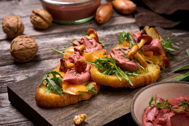 Als Herbstpilzcreme ist der Aufstrich toll. Mit ein paar Scheibchen mariniertem Muskatkürbis zum Beispiel, vielleicht mit ein paar frisch gebratenen Pilzen und den letzten Rucolablättchen aus dem Freiland werden daraus luxuriöse Crostini. Da braucht es sicher keine Foie gras – und wie gesagt hat meiner Meinung nach beides überhaupt nichts miteinander zu tun. Dachte ich. Meine stark zum pflanzlichen tendierende Frau nämlich verweigert den feinen Aufstrich, weil sie die Farbe zu sehr an ein Leberparfait erinnert. Das hätten sie jetzt auch nicht gewollt, die Leute von Peta UK.