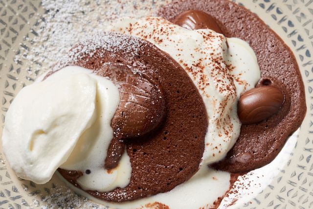 Als Profikoch komme ich mir leicht kindisch vor, wenn ich Schokopancakes mit Ostereiern belege, aber egal – sie schmecken auch im fortgeschrittenen Erwachsenenalter noch wunderbar nach Kinderfest. Außerdem kann ich mit den Pancakes alle Ostereier, die nicht aus meiner Lieblingsschokolade sind, ganz elegant verschwinden lassen. Übrig bleibt ein sehr einfaches Dessert, das alle mögen. Schöne Ostern!
