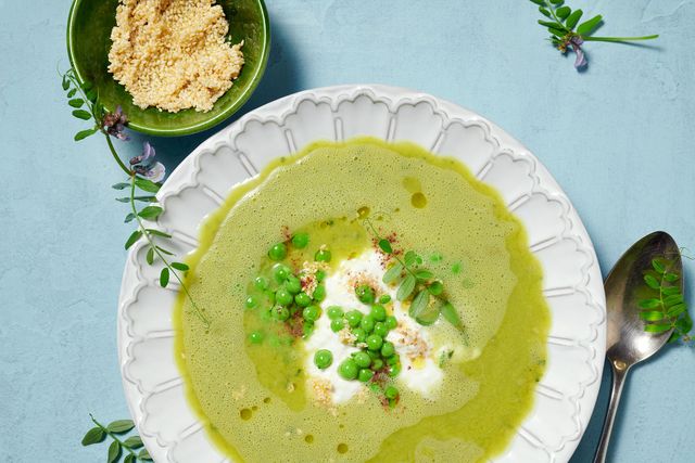 Kalte Erbsensuppe mit Stracciatella di Bufala