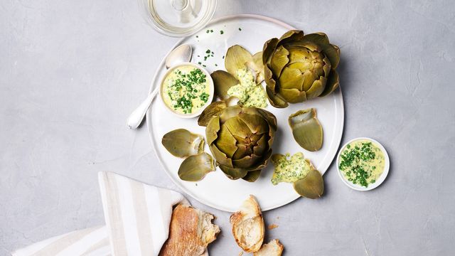 Artischocken mit Zitronen-Miso-Schnittlauchsauce
