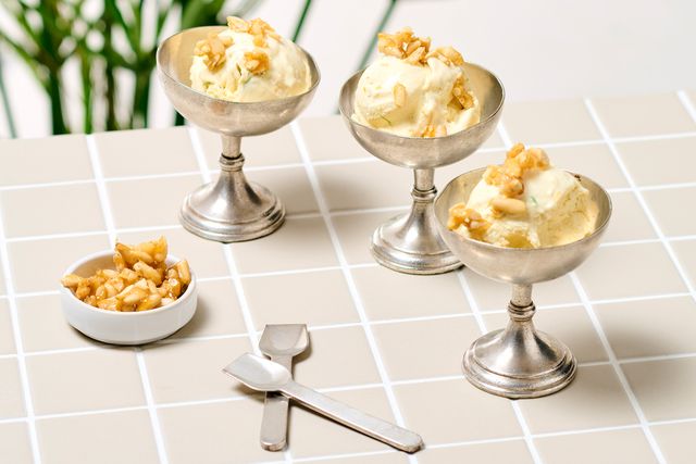 Profumi dell’isola – Cremiges Eis mit Rosmarin, Zitrusduft und gerösteten Pinienkernen