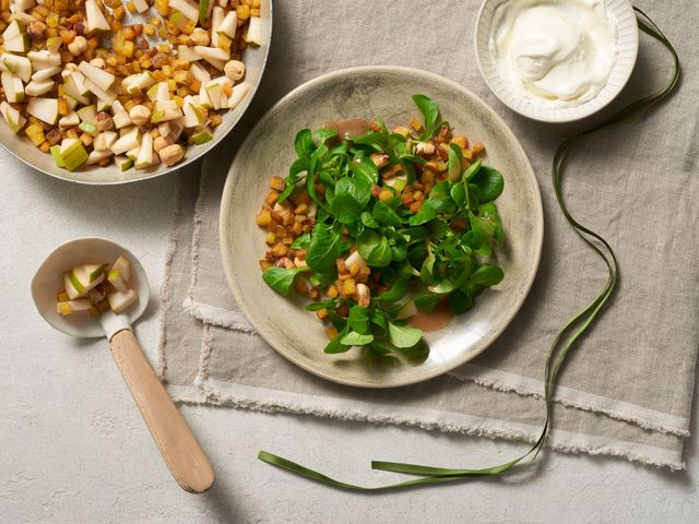 Anstelle der Wildkräuter können Sie zu den knusprigen Bratkartoffeln auch eine große Schüssel Salat servieren. Anregungen finden Sie hier.